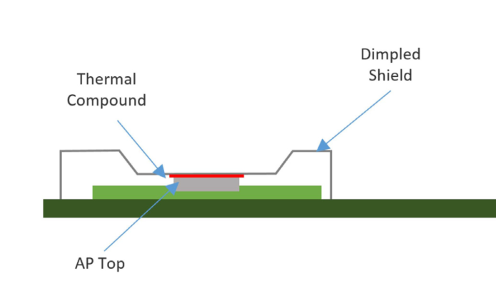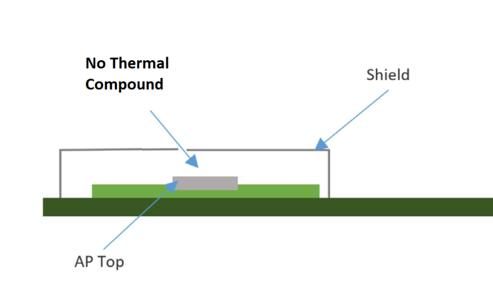 There is no access to CPU to manage heat transfer, as the Artik is fully covered with its shield. We sent the measurements and detailed information to Samsung. Their support team suggested to redesign the Artik, but as you can notice in the pics below, it is not an appropriate solution for us, as the sizes will be much bigger than the old version has. Also the graphics provided show that issue is not solved fully and need new version production to test.